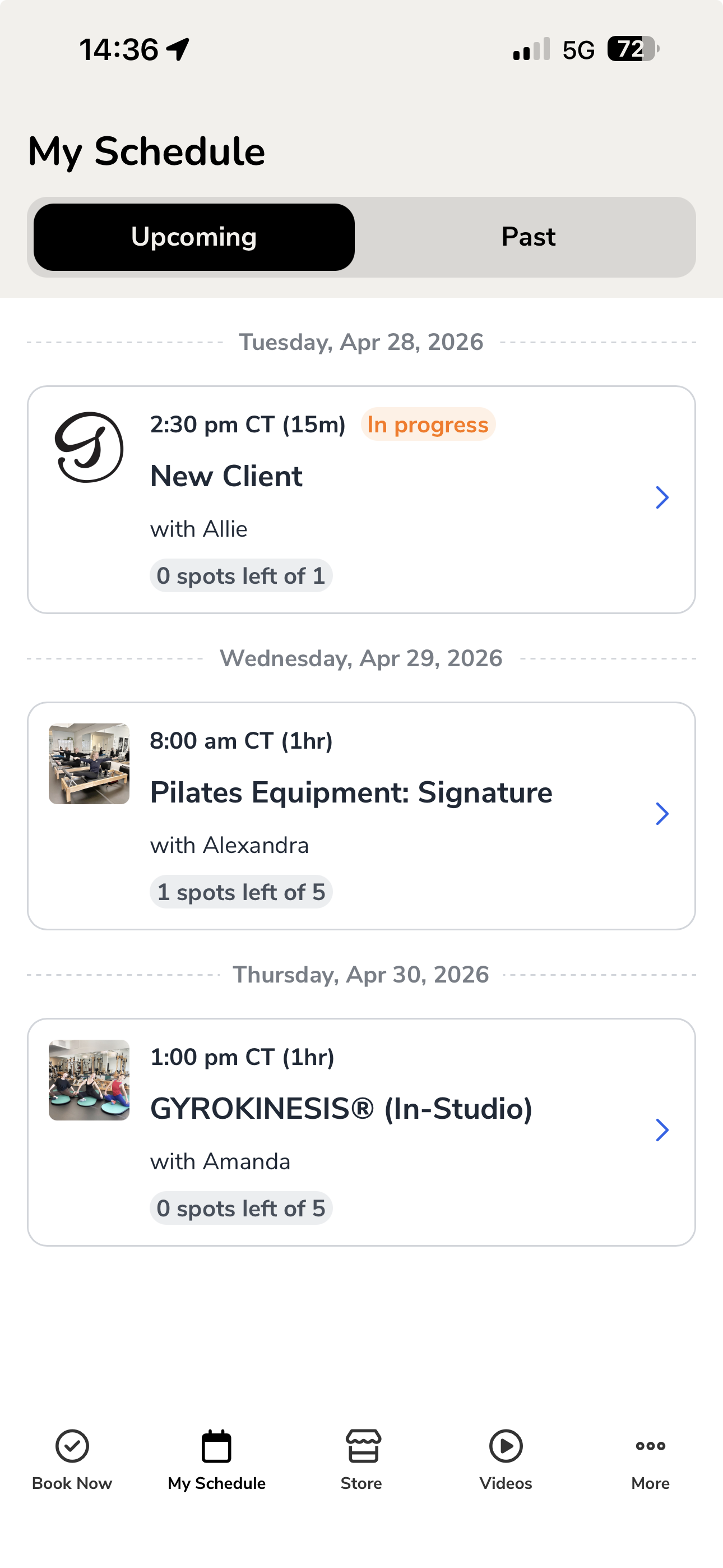Your account also shows you everything the front desk sees. Current availability, open spots and waitlist options are all there. If a time you want is full, you can add yourself to the waitlist directly without having to call, text or email.
