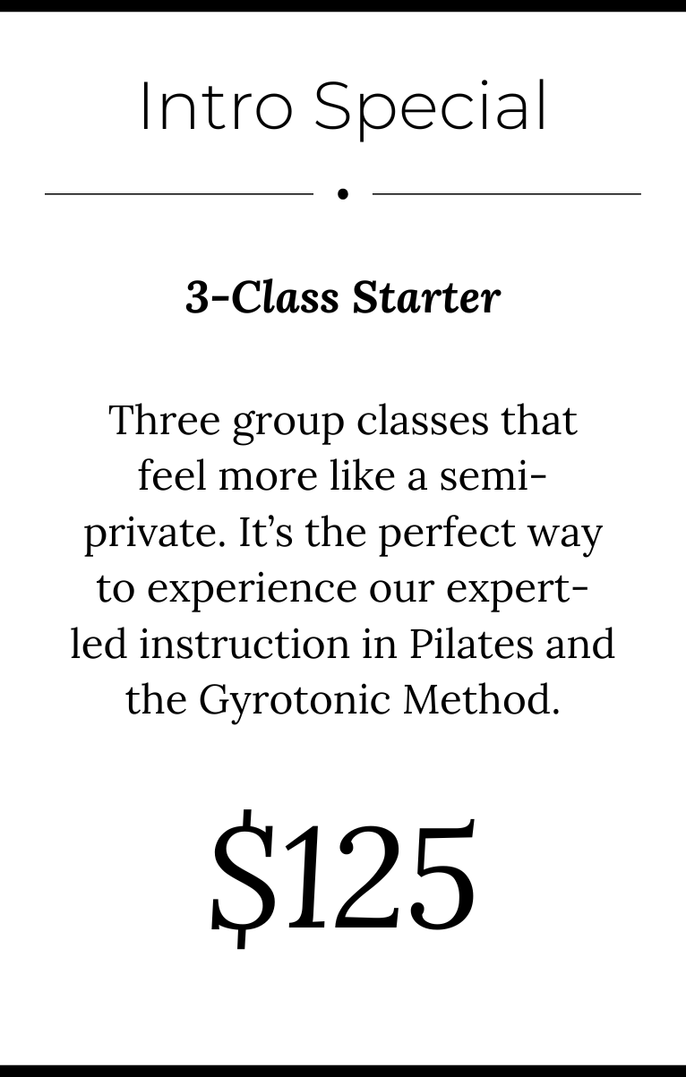 Somaspace strives to provide an exceptional studio experience by offering highly customized workouts in a private or group class format. Our spacious and clean studio space is serene and focused so you can get the most out of your time with us.